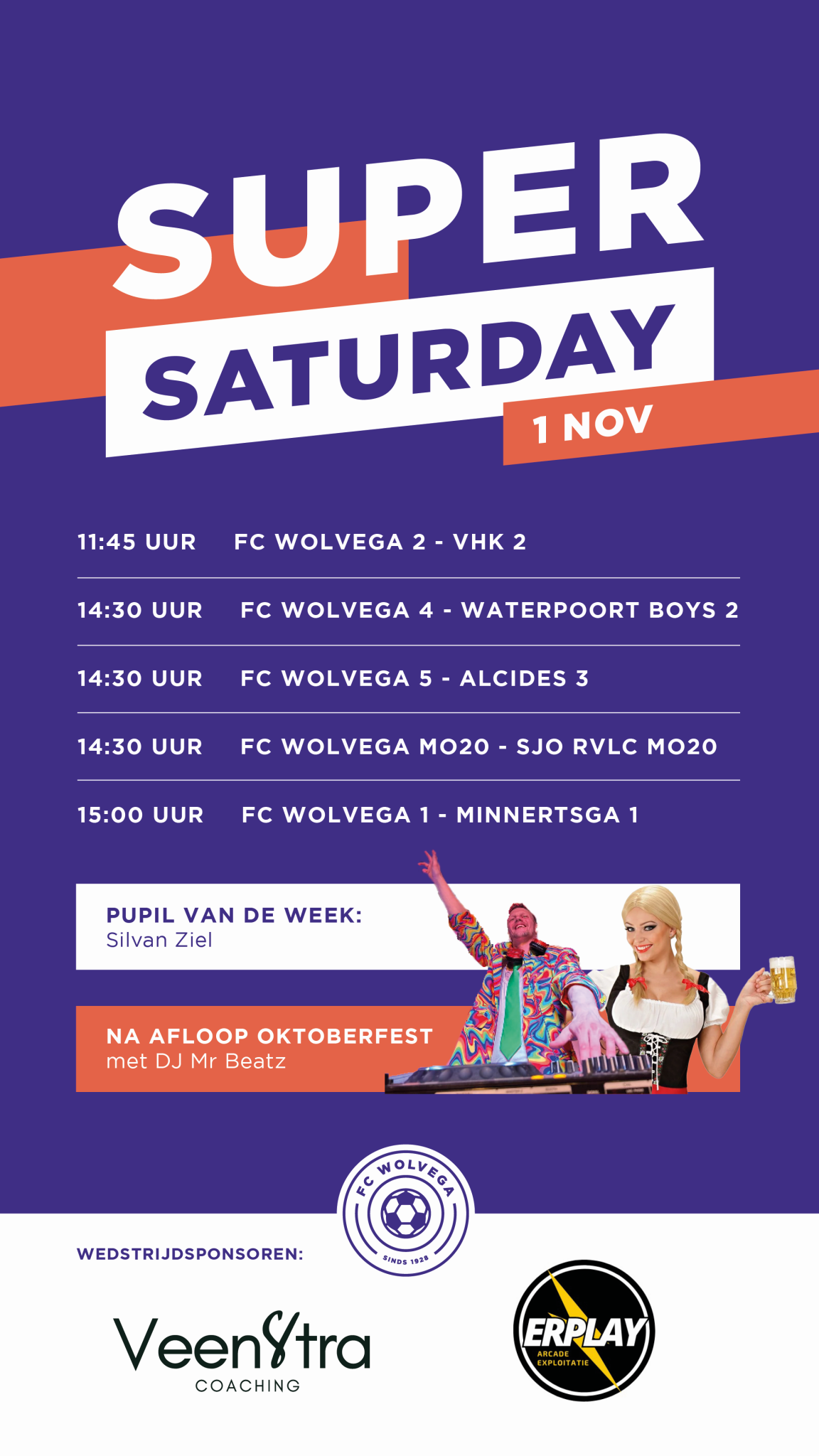 Zaterdag is dan de eerste Super Saturday van het seizoen! Het beloofd een zeer gezellige en sportieve middag te worden met een vol programma.